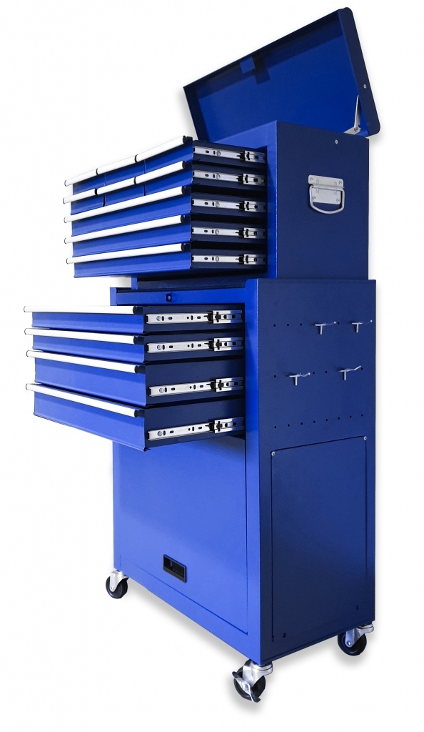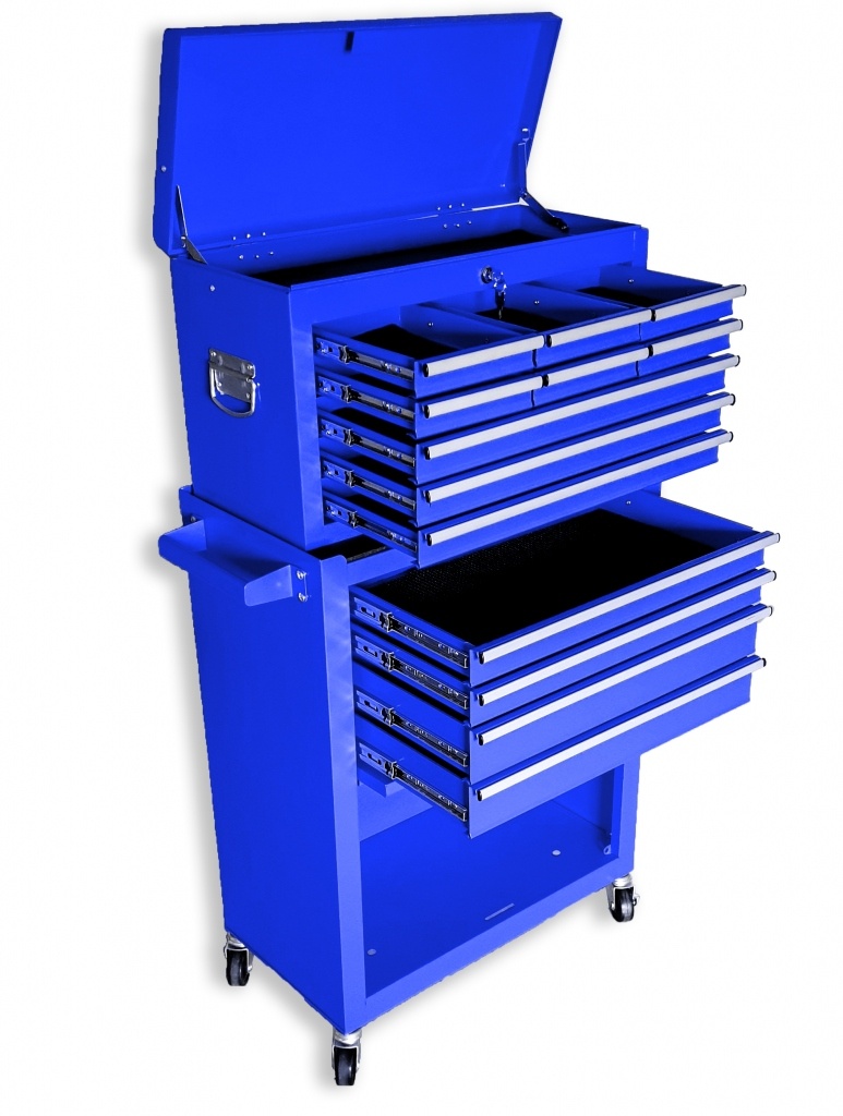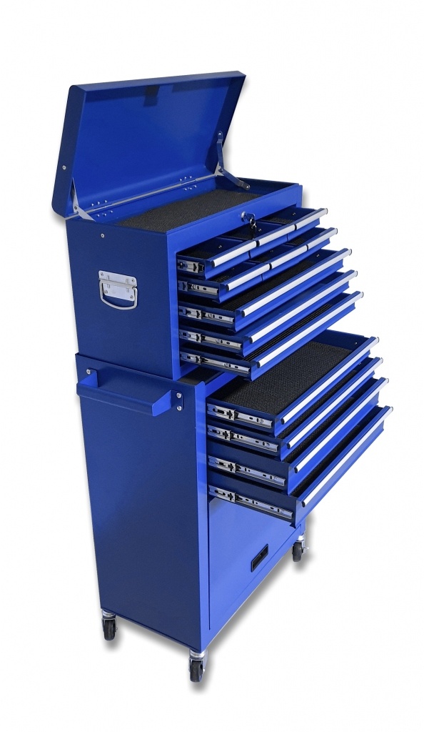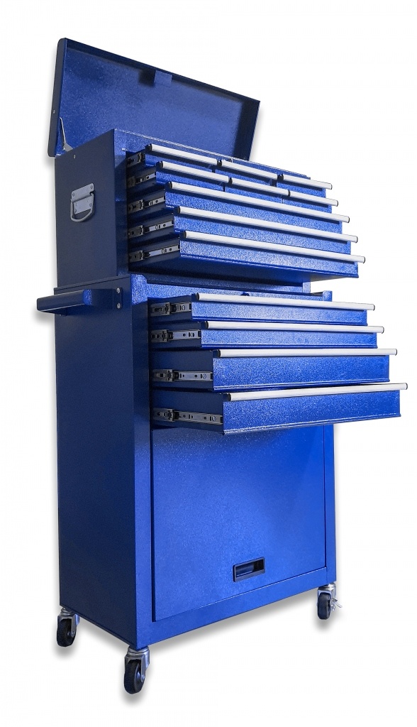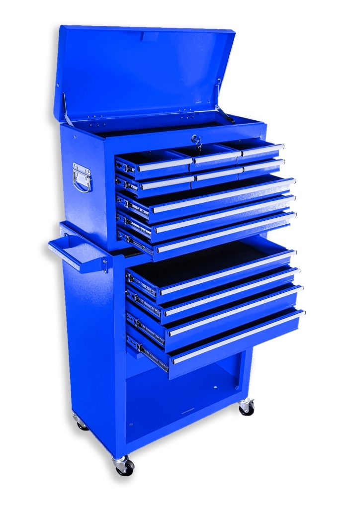 Posuvný vozik na dielenské náradie s 13 zásuvkami priehradky (2 dielny set) vhodný pre automobilové dielne a garáže. Vozik je uplne nový originálne zabalený. Nový model poskytuje: