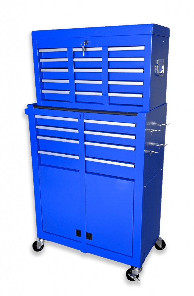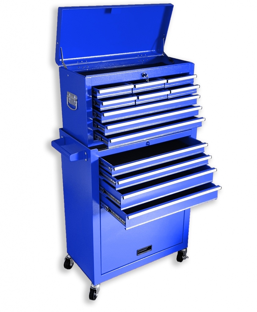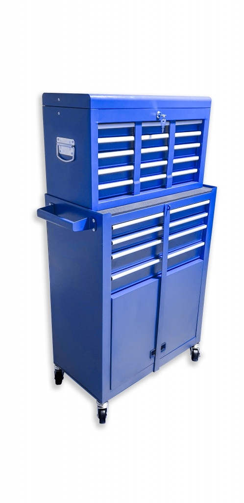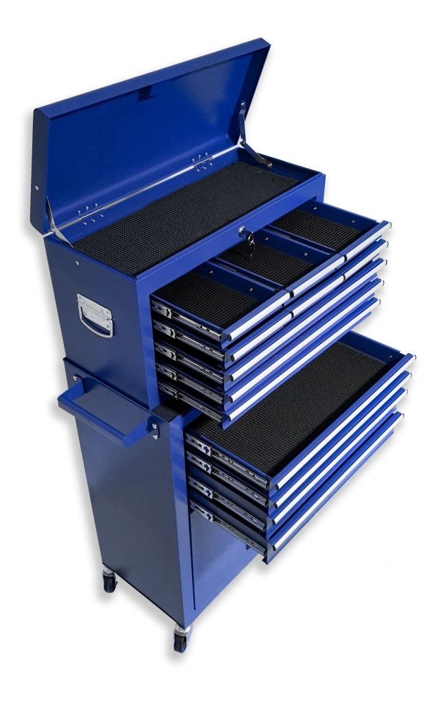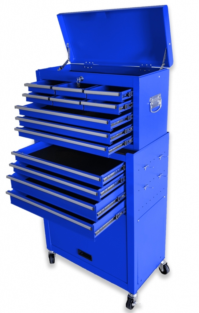 Posuvný vozik na dielenské náradie s 13 zásuvkami priehradky (2 dielny set) vhodný pre automobilové dielne a garáže. Vozik je uplne nový originálne zabalený. Nový model poskytuje: