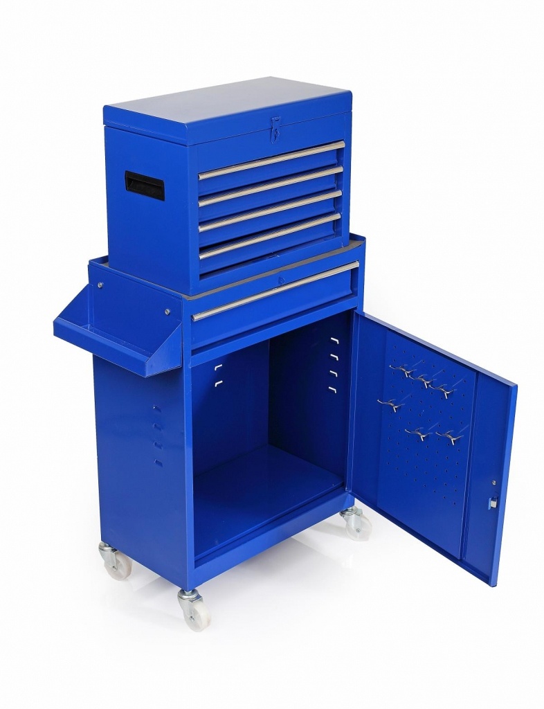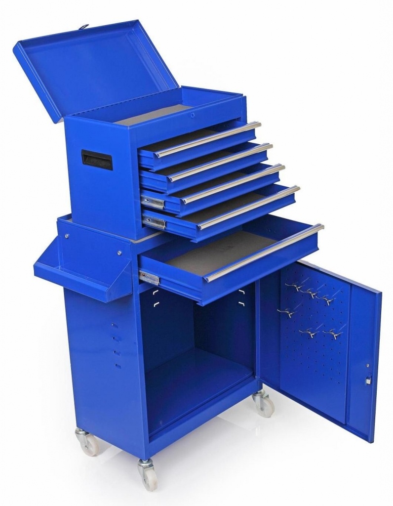 Posuvný vozik na dielenské náradie s 5 zásuvkami (2 dielny set) vhodný pre automobilové dielne a garáže. Vozik je uplne nový originálne zabalený. Nový model poskytuje: