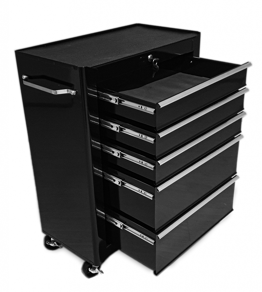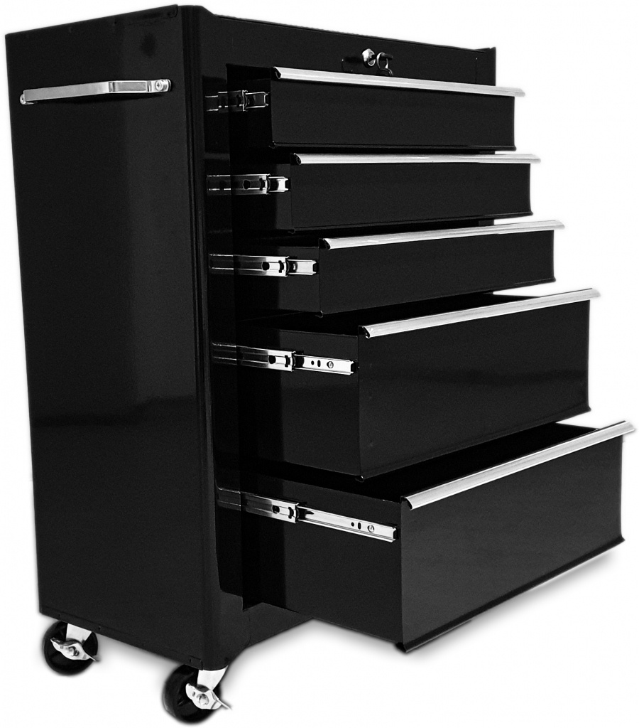 Posuvný vozik na dielenské náradie s 5 zásuvkami vhodný pre automobilové dielne a garáže. Vozik je uplne nový originálne zabalený. Nový model poskytuje: