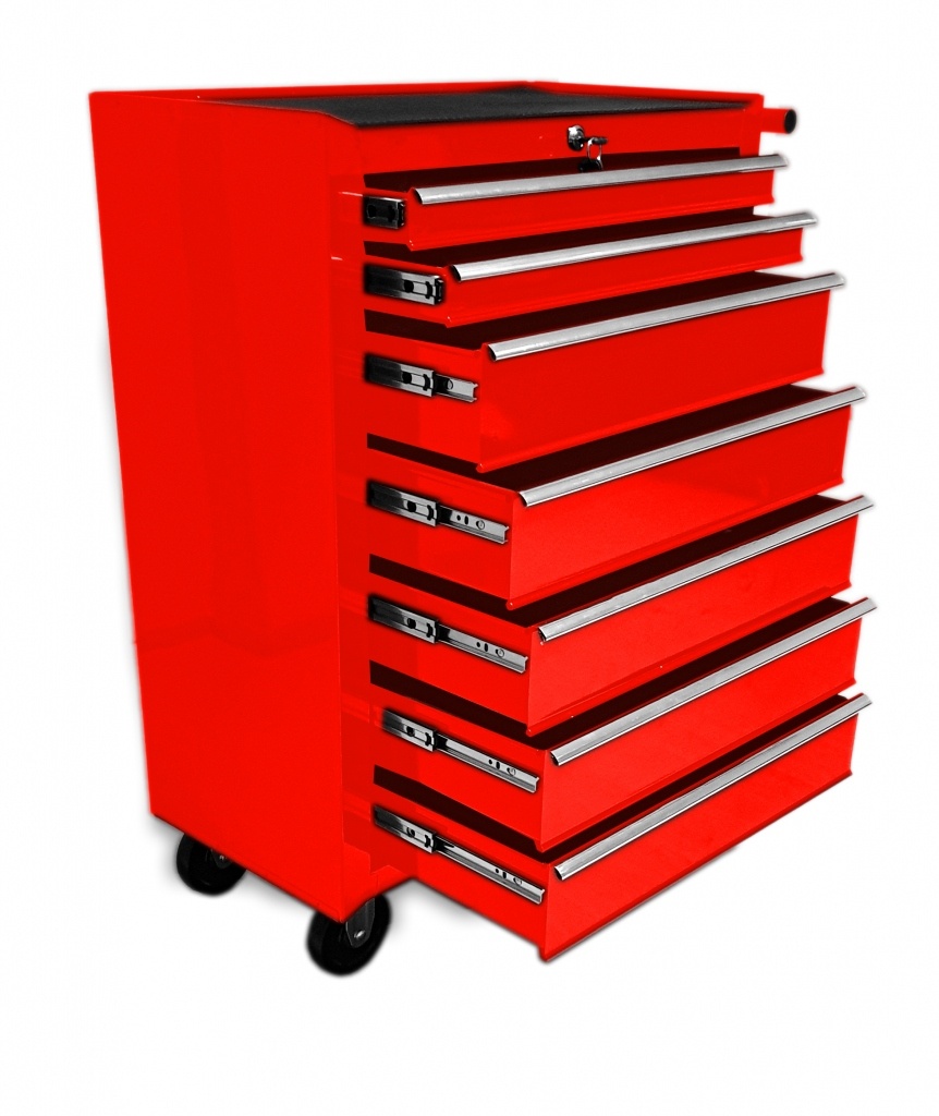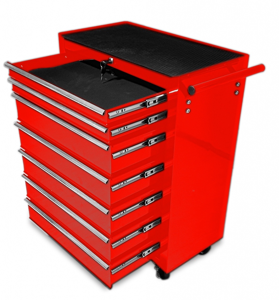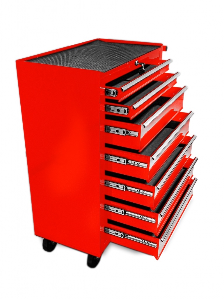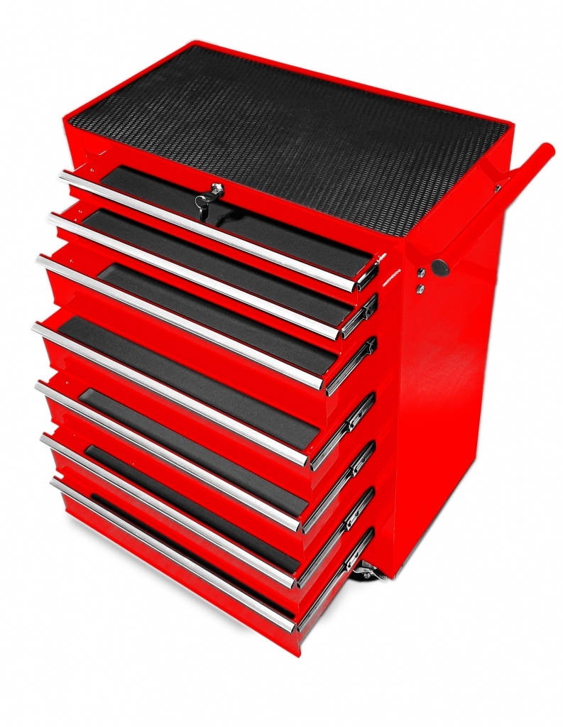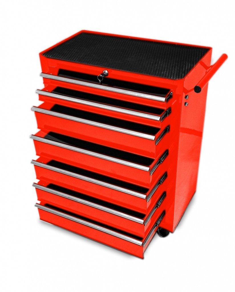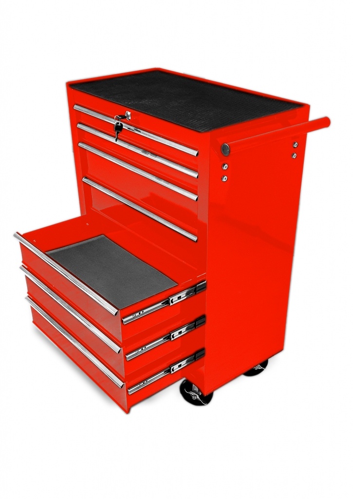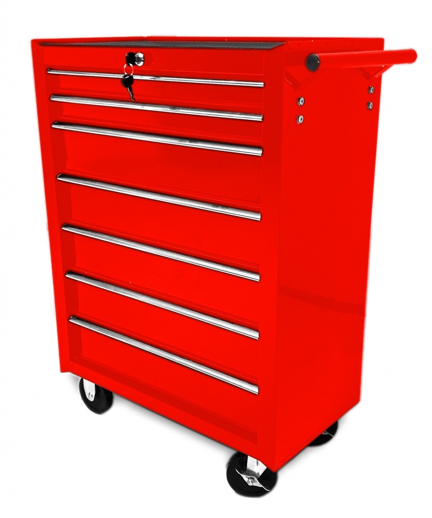Posuvný vozik na dielenské náradie s 7 zásuvkami vhodný pre automobilové dielne a garáže. Vozik je uplne nový originálne zabalený. Nový model poskytuje: