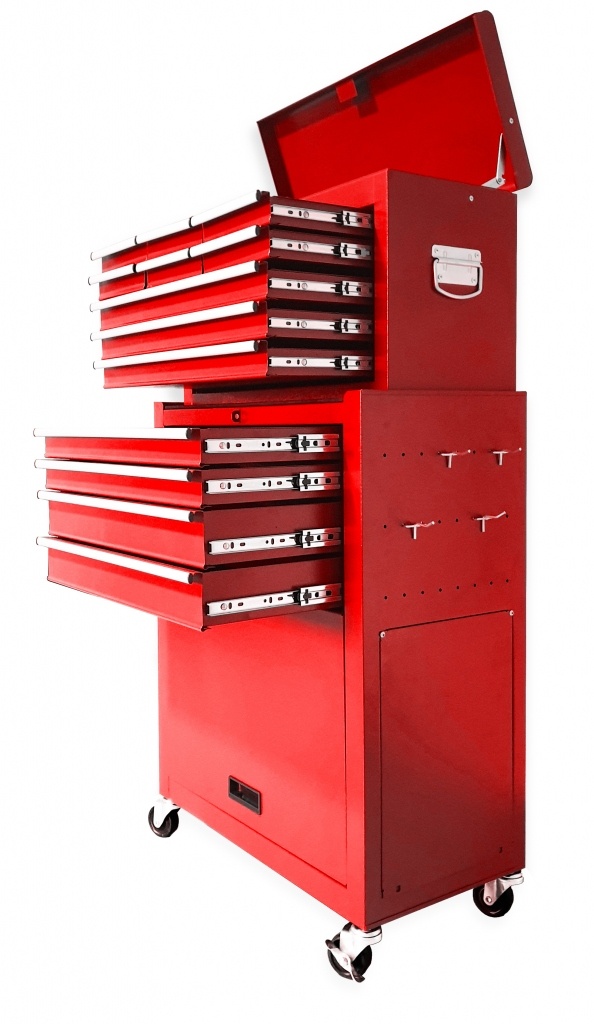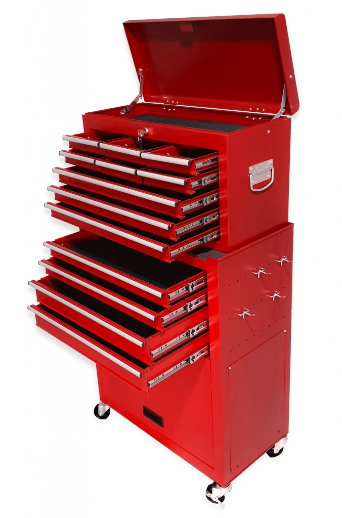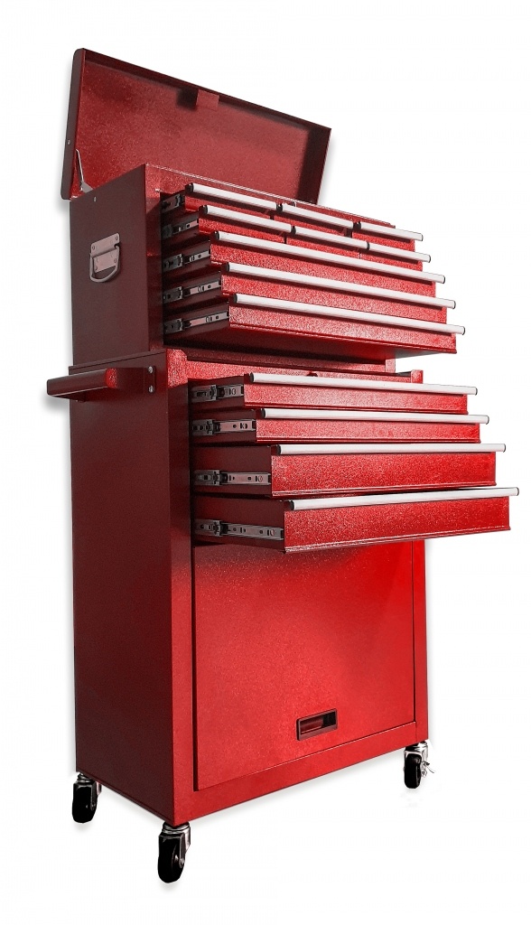Posuvný vozik na dielenské náradie s 13 zásuvkami priehradky (2 dielny set) vhodný pre automobilové dielne a garáže. Vozik je uplne nový originálne zabalený. Nový model poskytuje: