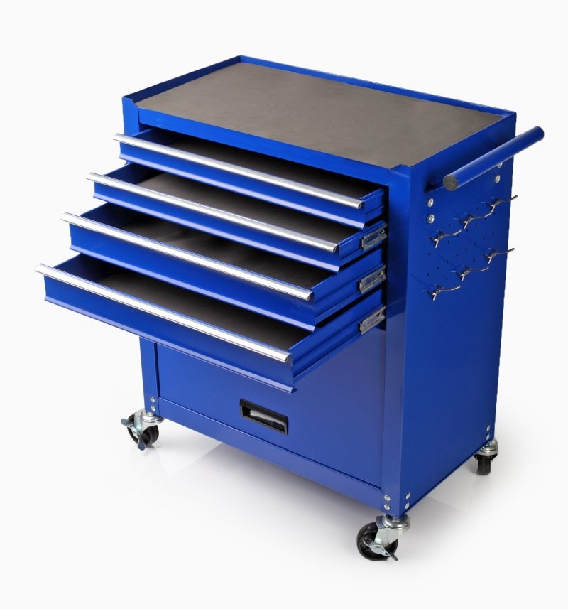 Posuvný vozik na dielenské náradie s 4 zásuvkami 1 priehradka vhodný pre automobilové dielne a garáže. Vozik je uplne nový originálne zabalený. Nový model poskytuje: